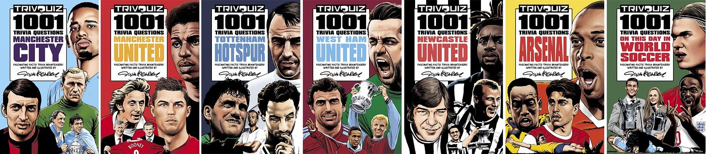 I’ve authored numerous illustrtaedbooks on football, including my recent Trivquiz series from Pitch Publishing: